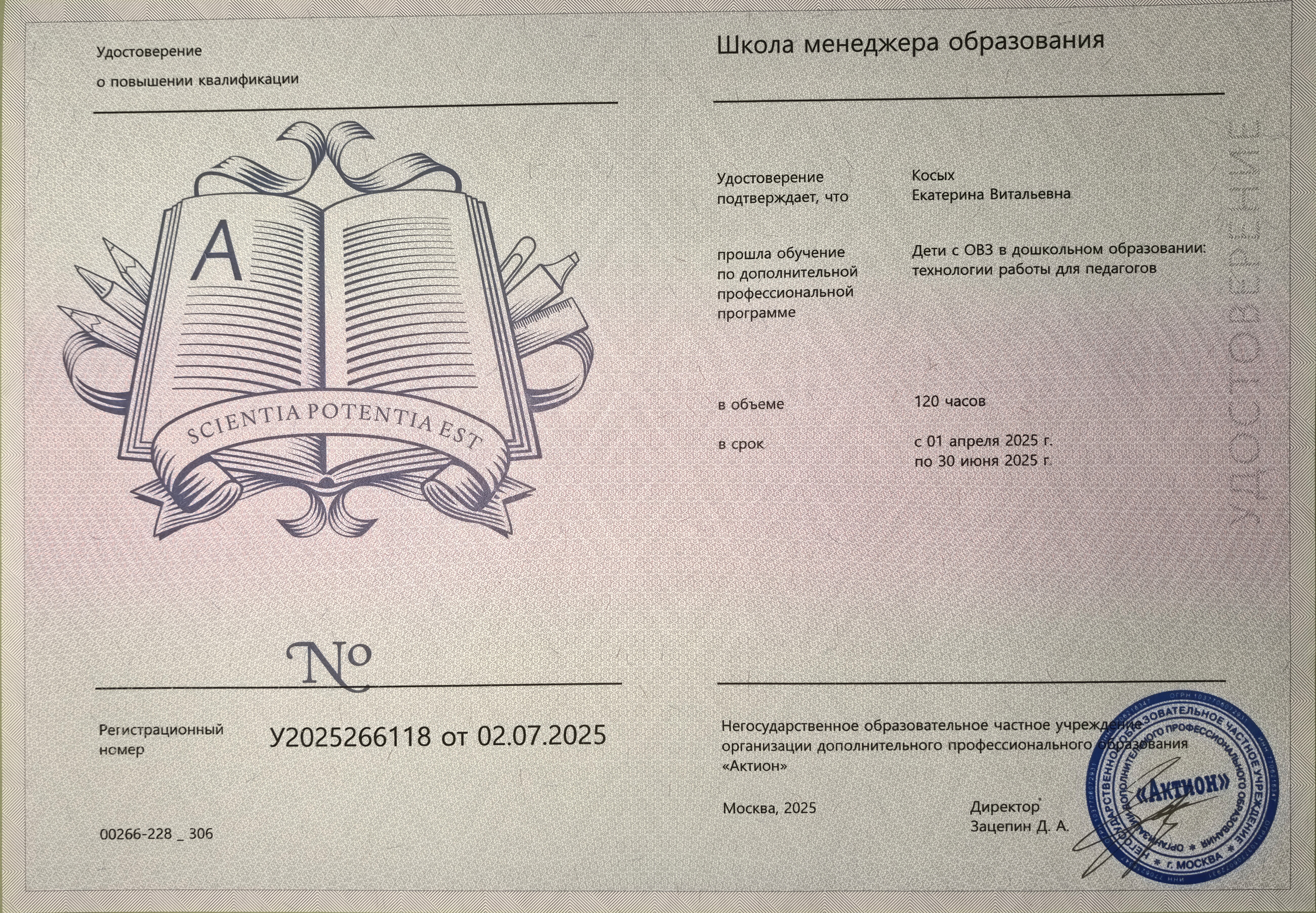 Сертификат, "Методы и инструменты ТРИЗ для педагогов", 2025г.